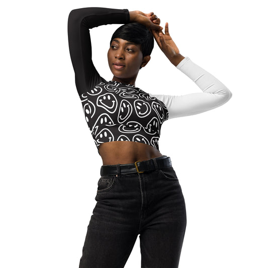 B&W Smile Long-Sleeve Crop Top