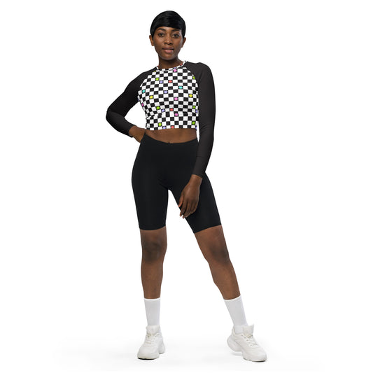 Checkered Flowers Long-Sleeve Crop Top