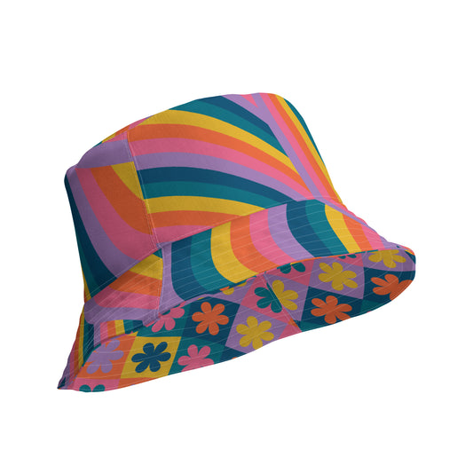 Retro Rainbow Bloom Reversible Bucket Hat