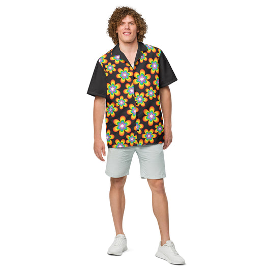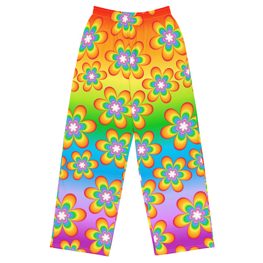 Rainbow Bloom Black Unisex Wide-Leg Pants