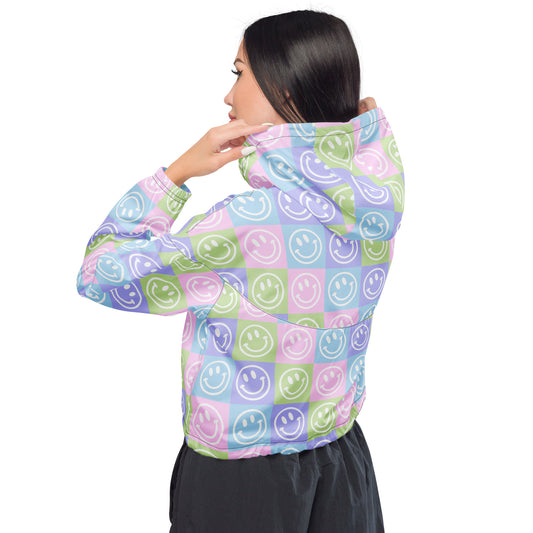Pastel Checker Smile Cropped Windbreaker