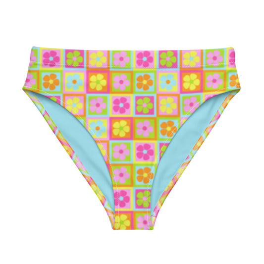 Checkered Flower High-Waisted Bikini Bottom