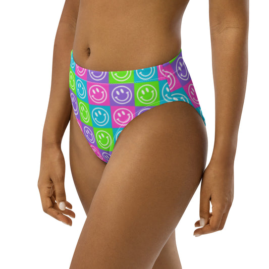 Bright Checker Smile High-Waisted Bikini Bottom
