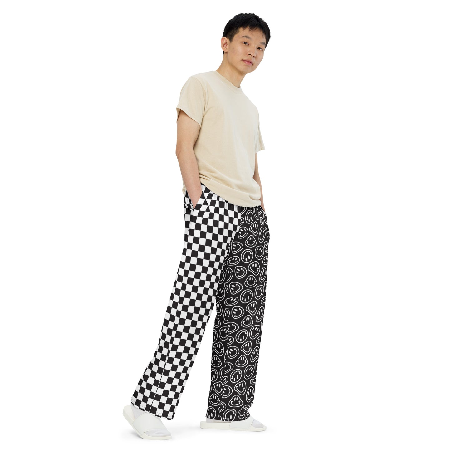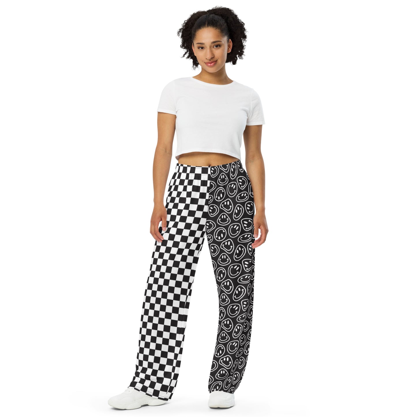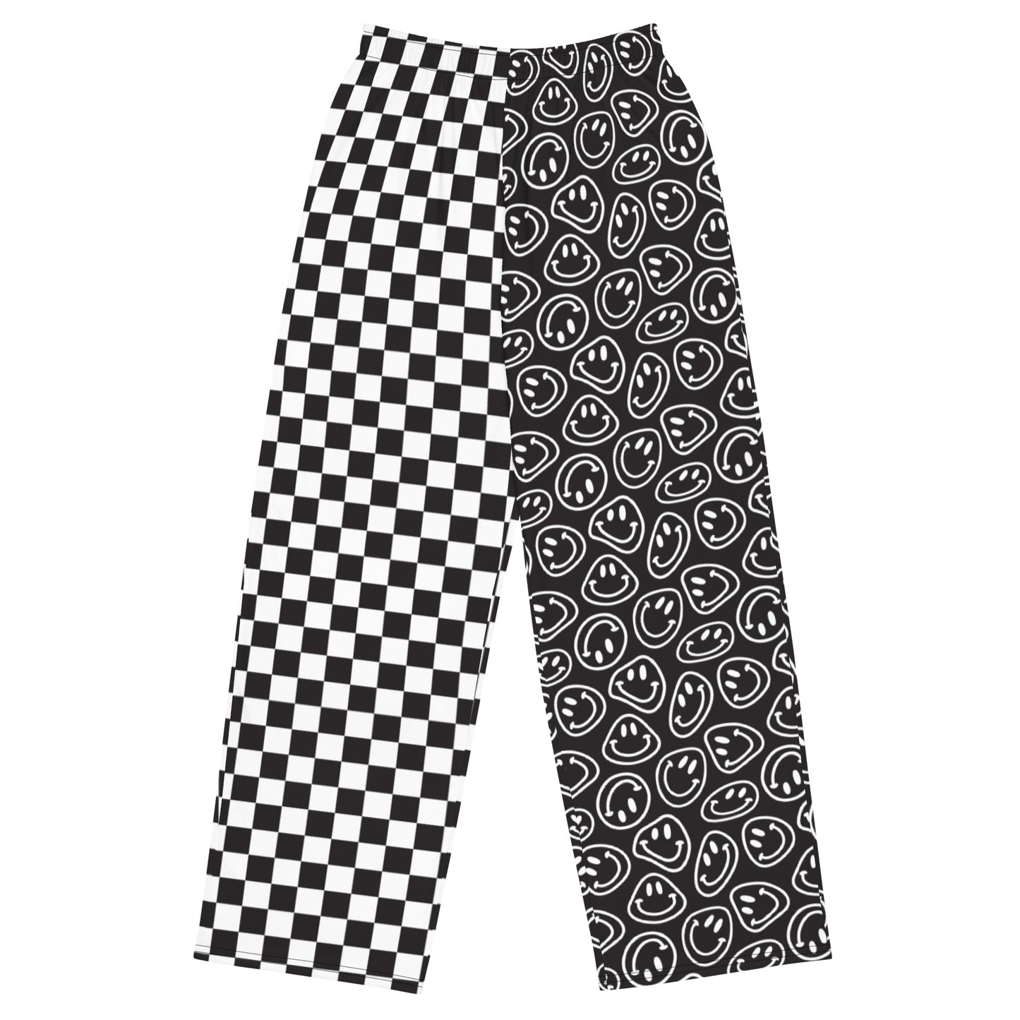 B&W Smiles Checkered Unisex Wide-Leg Pants