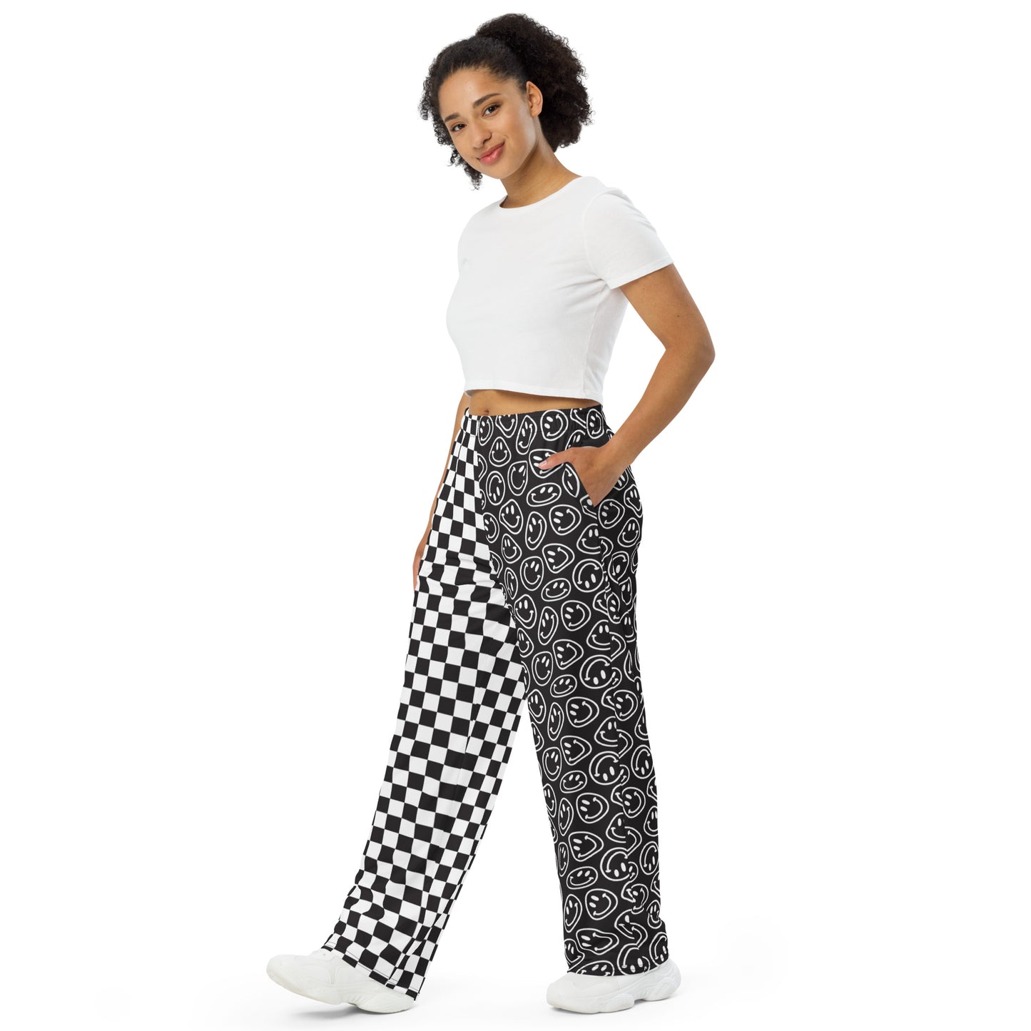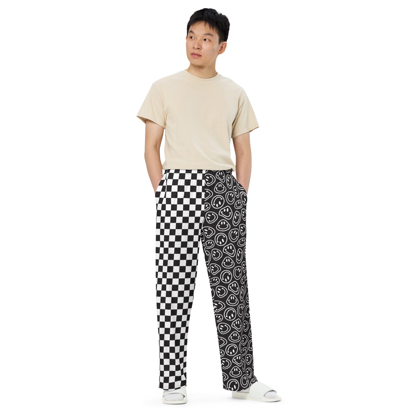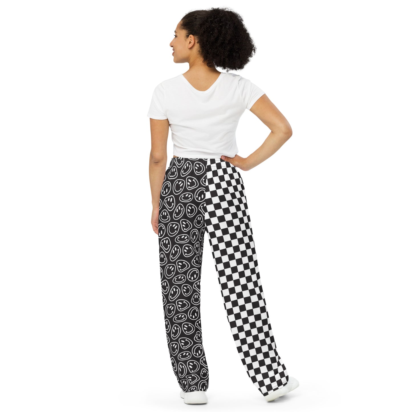 B&W Smiles Checkered Unisex Wide-Leg Pants