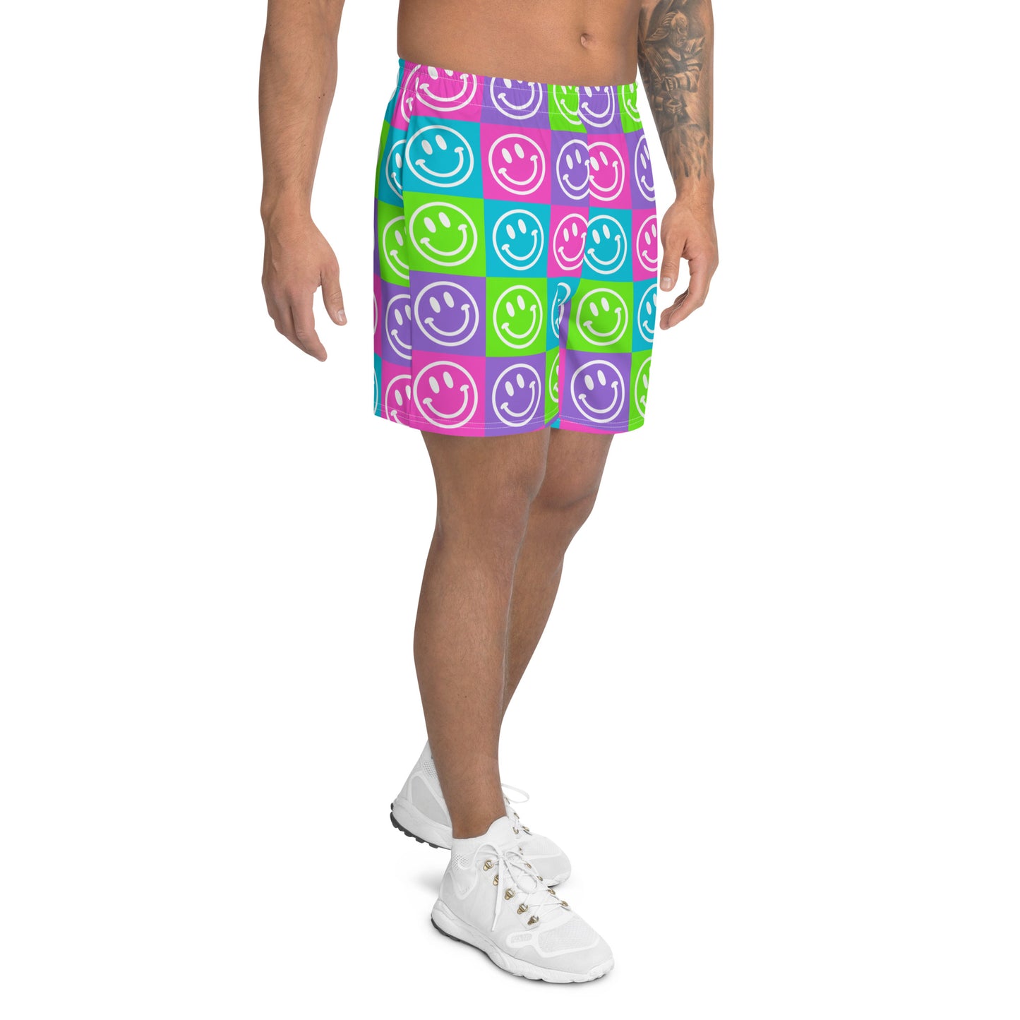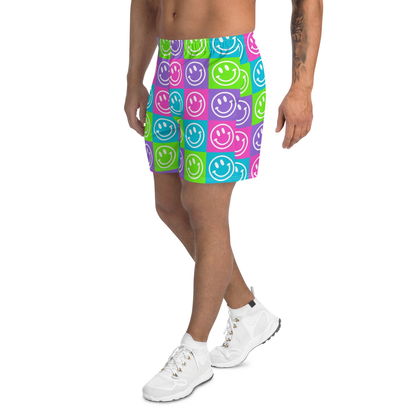 Bright Checker Smile Men's Athletic Shorts