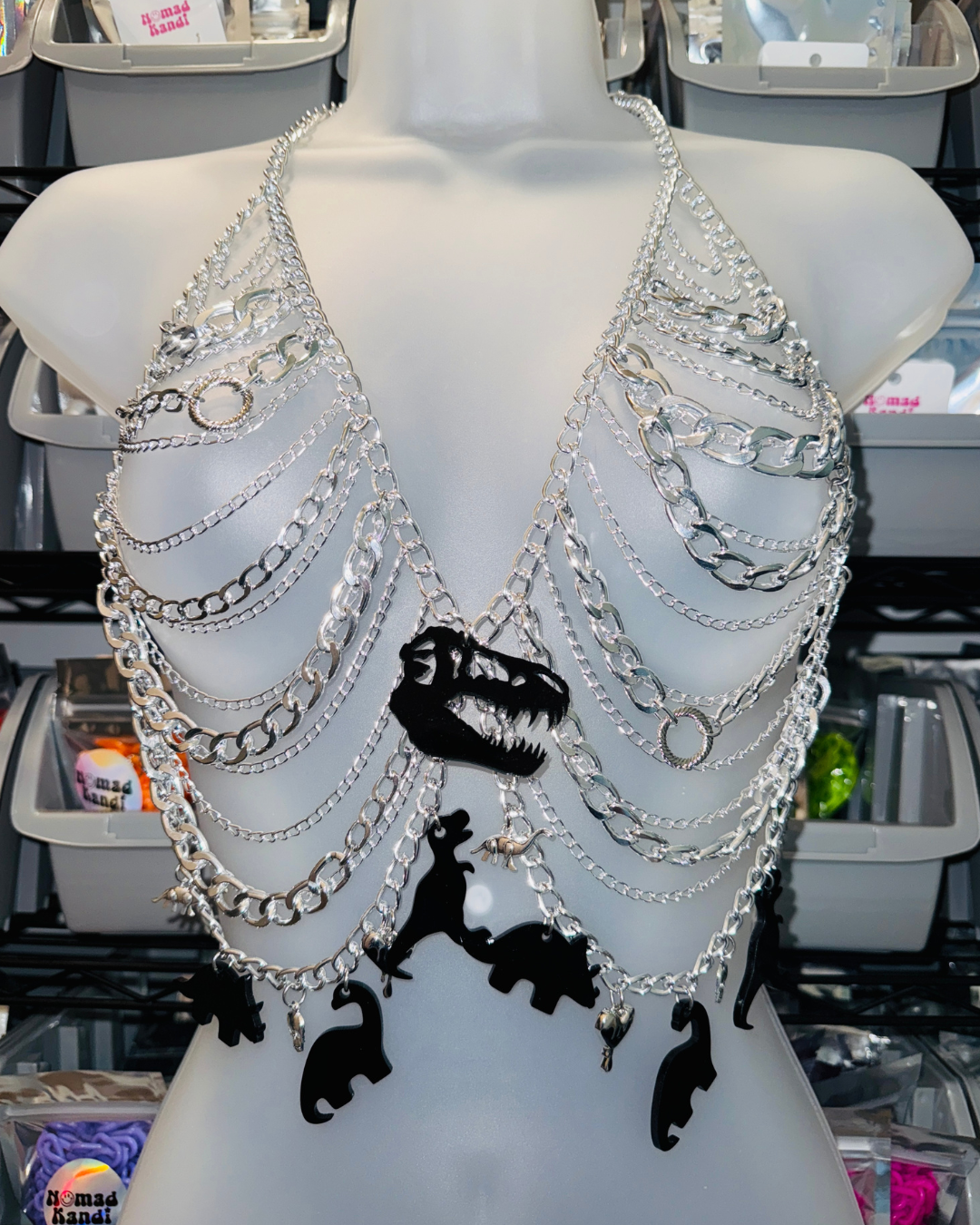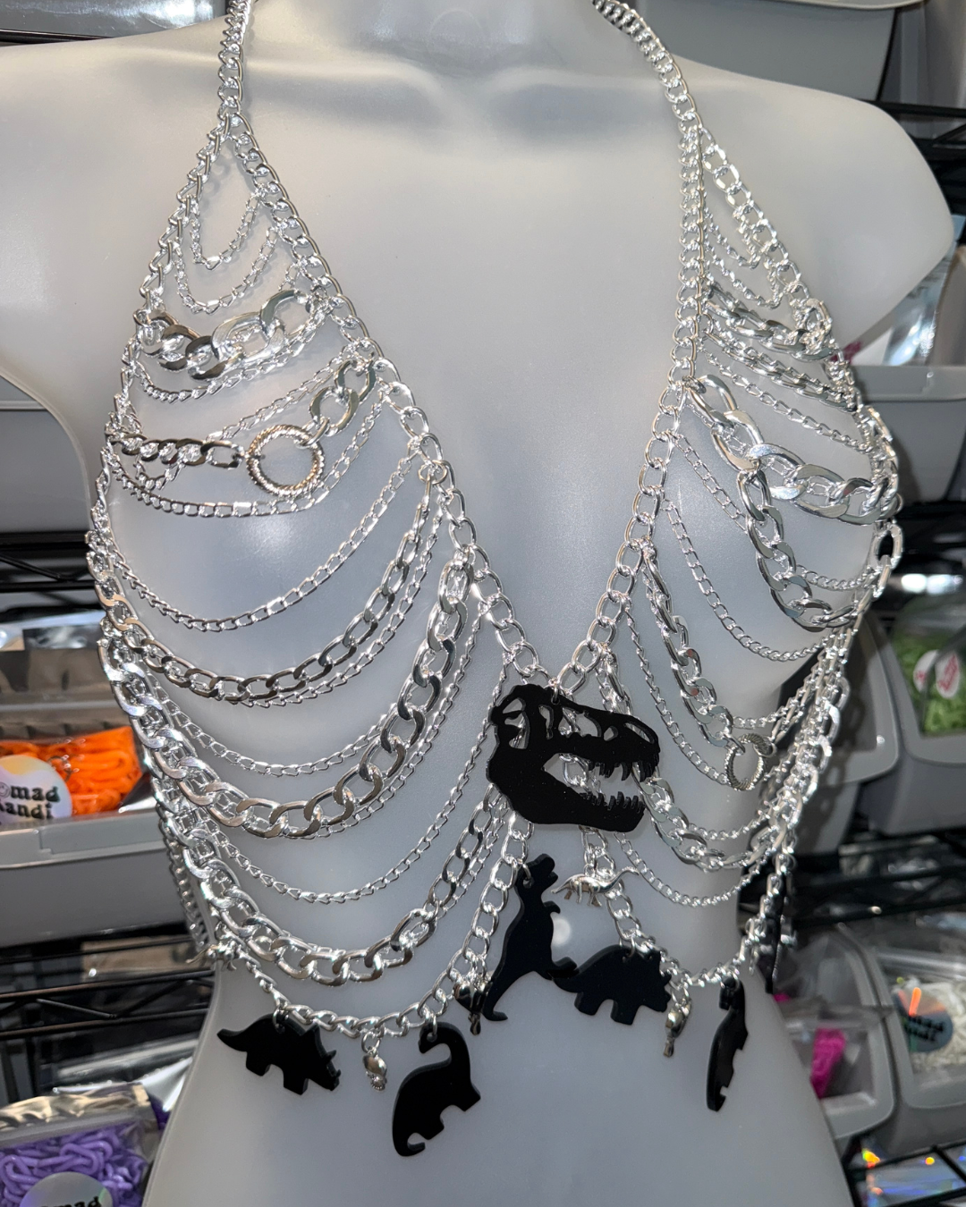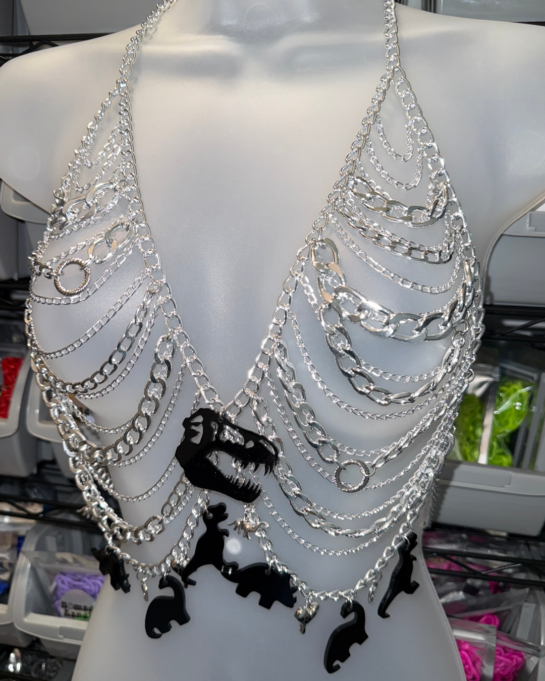 - Metal chain harness with charms