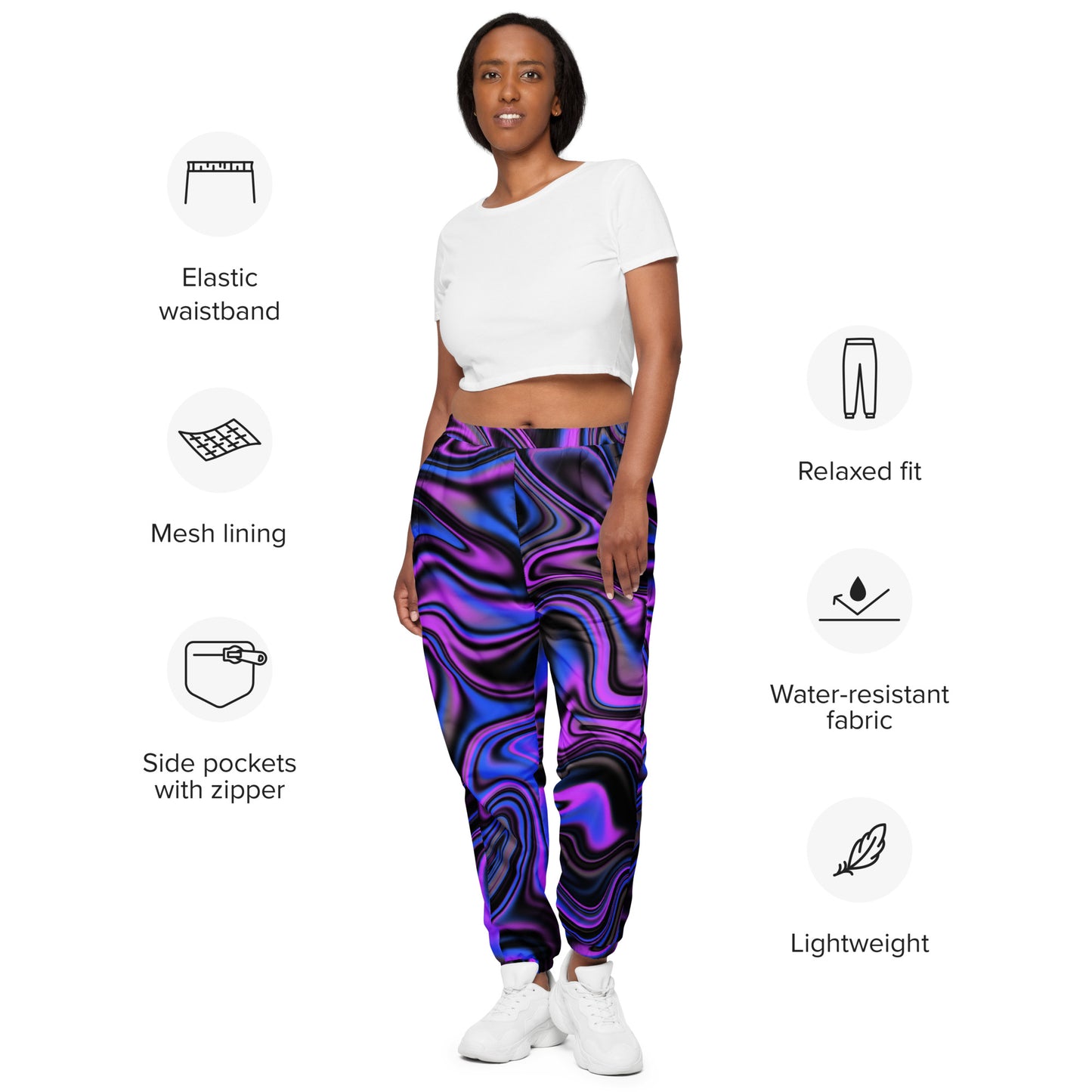 - Elastic waistband and ankle cuffs