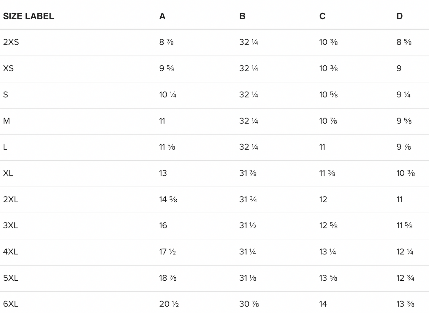 Disclaimer: If body measurements fall between sizes, size up for a comfortable fit and size down for a snug fit.